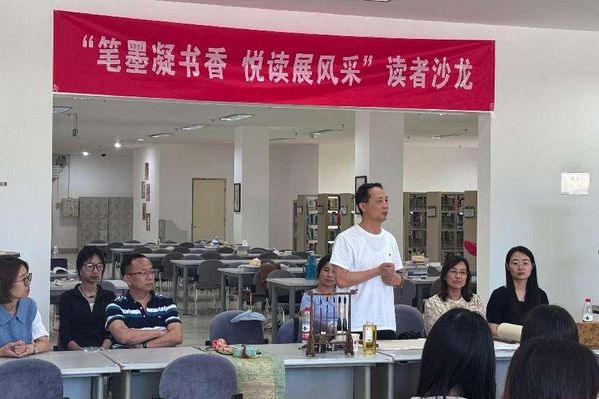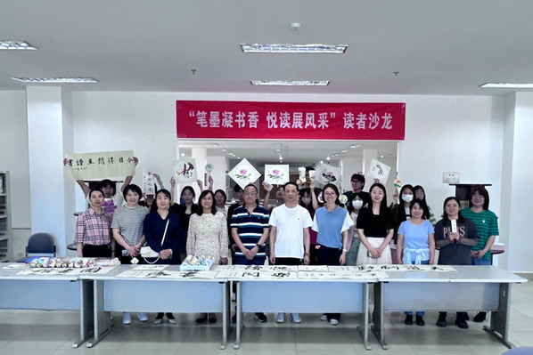 5月15日下午,学院图书馆与宝坻区图书馆在主馆二楼南厅联合举办了“笔墨凝书香、悦读展风采”读者沙龙活动。活动特邀书法名家张华老师、宝坻区彩蛋制作非物质文化遗产传承人刘宝明老师现场分享书画创作心得。图书馆领导及师生代表50余人参加了活动。