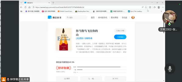 12月17日,图书馆“经典百书研读”人文经典组举行线上读书沙龙活动。特邀人文学院钟学艳副教授担任阅读指导教师,与同学们云端相聚,围绕《你当像鸟飞往你的山》一书,开展了一场关于青春、教育与自我重塑的深度对话。