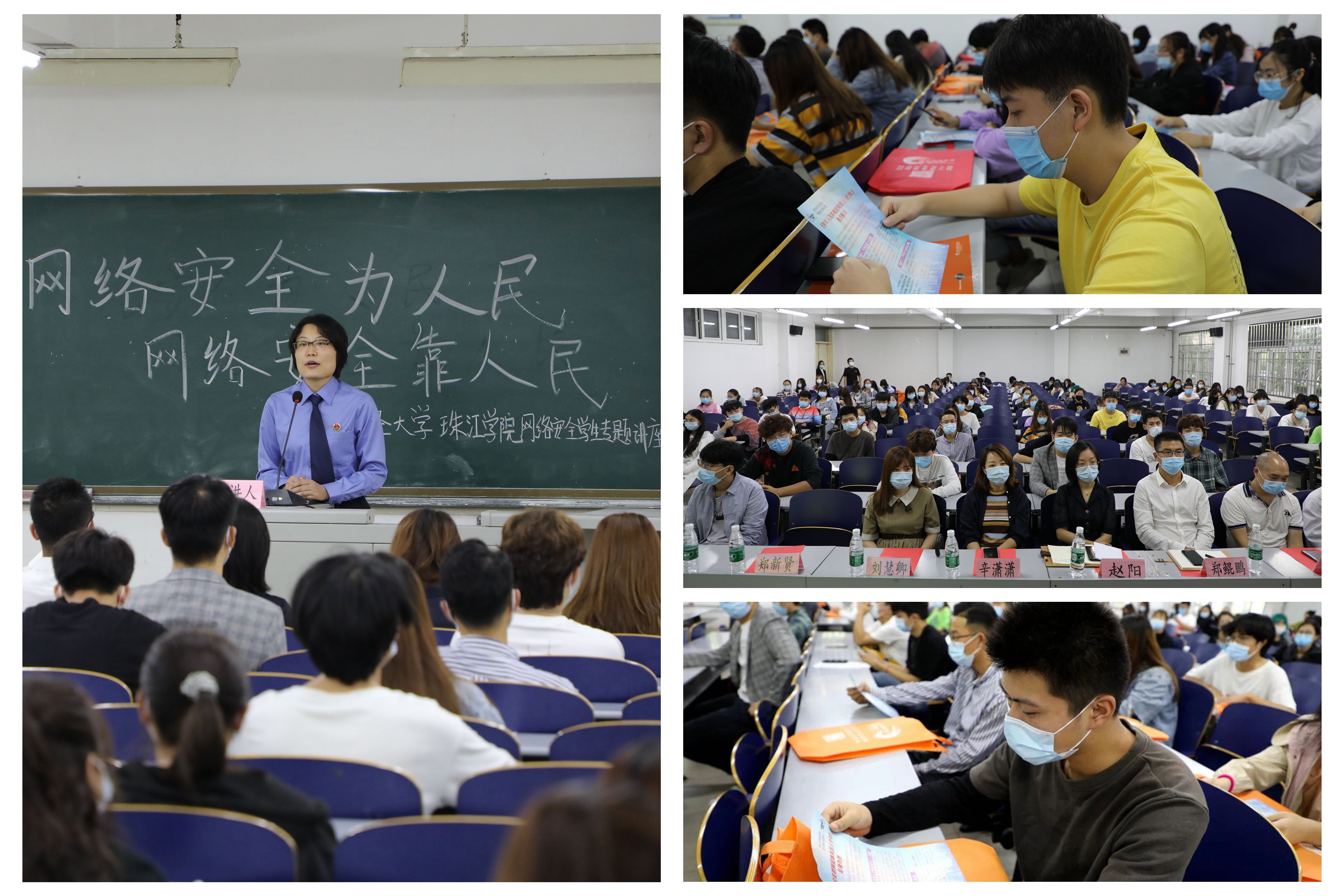 2020年9月15日,进一步落实习近平总书记对网络安全工作做出的重要指示精神,按照市教委工委下发的《关于教育系统开展2020年国家网络安全宣传周活动的通知》,学院团委联合宝坻区团委、区网信办、区检察院开展网络安全进校园专题讲座活动。区网信办副主任李国清、区网络安全应急指挥中心主任刘峻峰、团区委副书记赵阳、区人民检察院第二检察部副主任辛潇潇、助理检察官郑新贤等,学院李金亮副院长,院办、党办、团委、安全部、学工部、设备网络中心部门相关同志及辅导员老师及80余名学生代表参加活动。