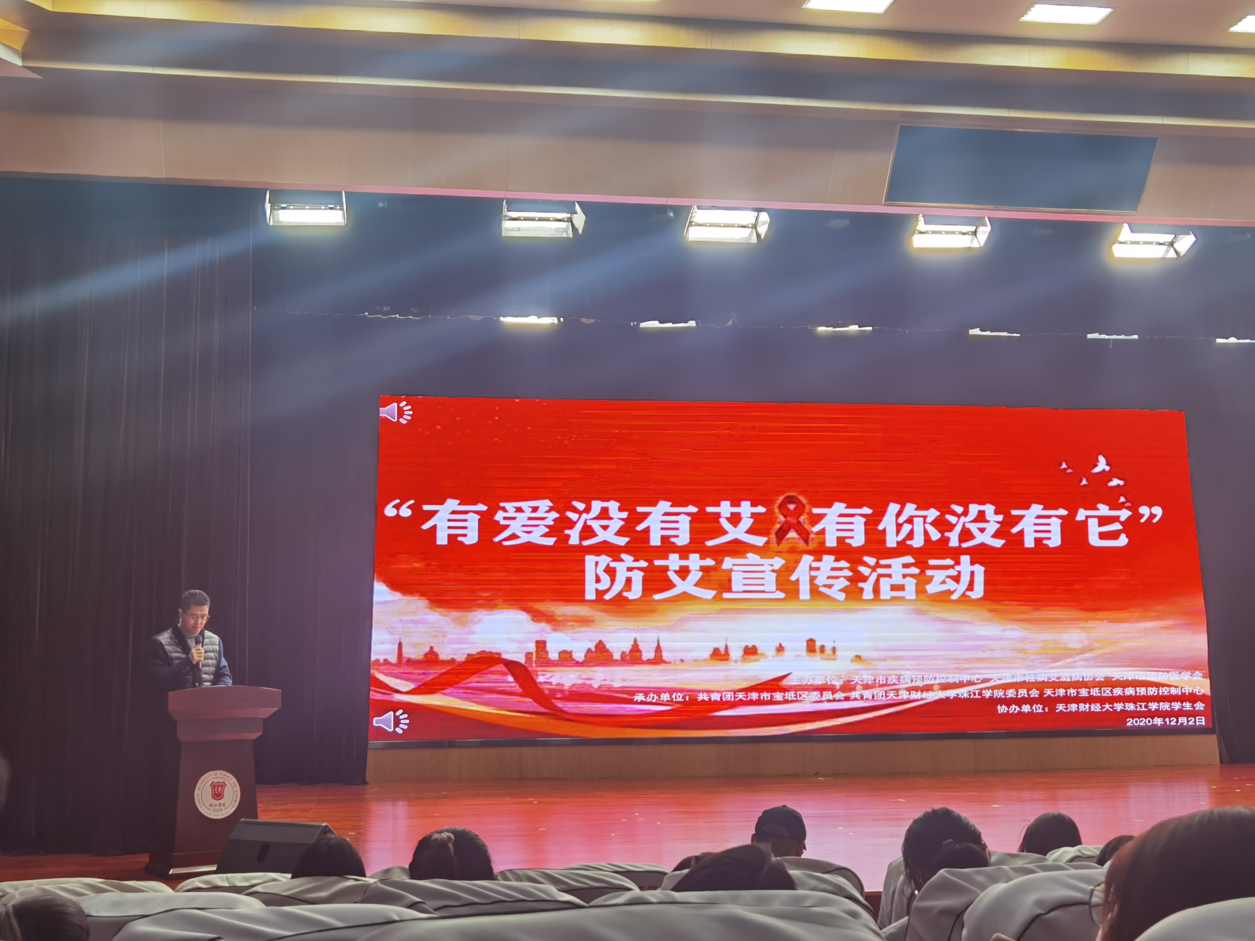 携手防疫抗艾,共担健康责任。为面向全院学生进行艾滋病防控知识宣传教育,提高安全防范意识,在世界第33个艾滋病日前后,12月2日我院团委在中和楼报告厅携防艾志愿者举办“有爱没有艾,有你没有它”艾滋病防控知识宣传活动。天津市宝坻区团委书记韩建强,组宣部部长韩依然,天津市宝坻区疫控中心老师吕猛、洪丽琼、陈晶晶、院团委副书记郑鲲鹏、团委老师黄智峰出席。