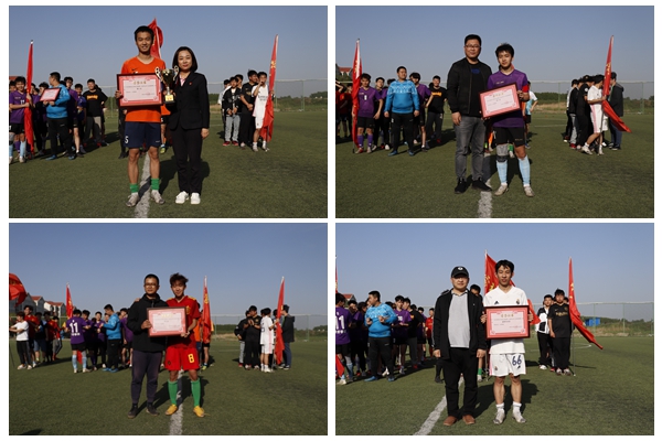 根据赛事评分规则,管理学院三队荣获冠军、经济学院二队荣获亚军、数据工程学院一队荣获季军、管理学院一队荣获第四名,经济学院宋怡然荣获金球奖,经济学院纪铭荣获金靴奖,管理学院于国澎荣获金手套奖。