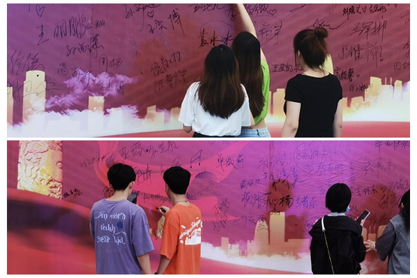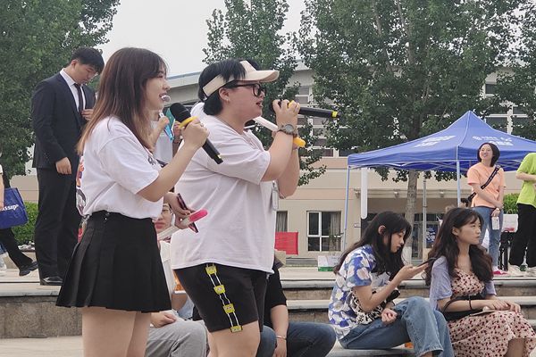 在毕业晚会开始前,团委在文化广场举行了K歌热场,毕业生们肩并肩、手挽手,唱起毕业离歌,并在毕业晚会背景墙上签字留念,表达了对学校的眷恋、对同学的不舍和对未来的期待。