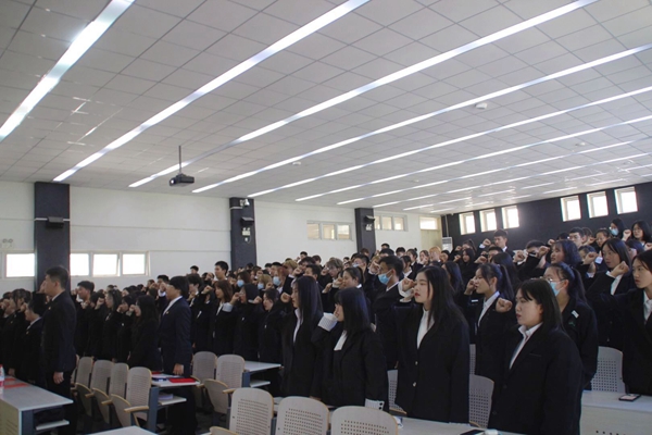 最后,外联部部长朱雅男带领全体成员宣誓。铿锵有力的声音,坚定自信的目光,诠释着“奉献、友爱、互助、进步”的志愿精神,我们坚信,在新一届主席团的带领下,在全体青协成员的努力下,青协将在我院志愿服务工作中做出更多、更大的贡献,向建院十五周年献礼。