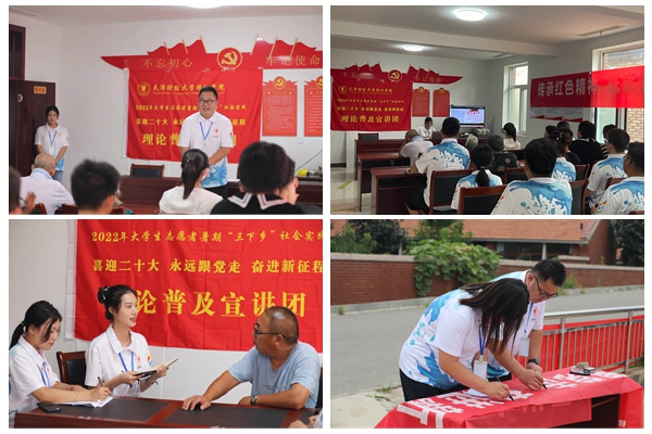 为深入学习宣传贯彻习近平新时代中国特色社会主义思想和党的十九届六中全会精神,贯彻落实习近平总书记关于青年工作的重要思想,深入学习习近平总书记在庆祝中国共产主义青年团成立100周年大会上的重要讲话精神,引导和帮助广大青年学生上好与现实相结合的“大思政课”,在社会课堂中“受教育、长才干、作贡献”,坚定信念听党话、跟党走,迎接党的二十大胜利召开,8月15日-8月18日,BEAT365英国官网团委组建理论普及宣讲团赴蓟州区开展了为期四天的社会实践活动。