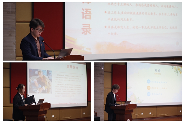 通过六个组的展示交流,回顾和总结了我院“青马工程”学员学雷锋主题实践活动的经验和成果。通过面对面展示交流和互学互动,积极探索我院学雷锋活动常态化、机制化、体系化的模式和方法,将弘扬雷锋精神融入文明校园建设,推动我院广大团员青年争当新时代雷锋精神的传人。