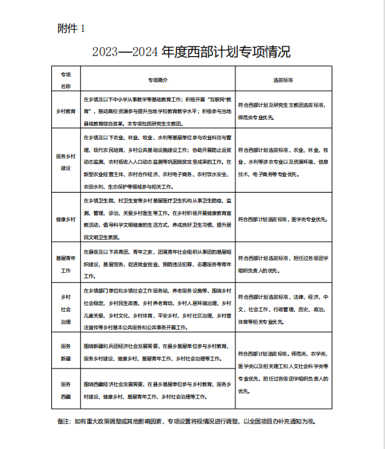 附件:1. 2023—2024年度西部计划专项情况