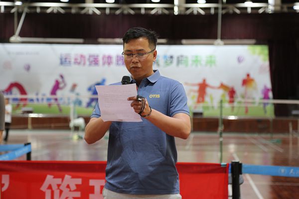 裁判长褚孝勇老师代表裁判组发言,他表示裁判员定会严格履行裁判员职责,服从领导,遵守纪律,并郑重承诺做到严肃认真、公正准确,全心全意为大赛服务。