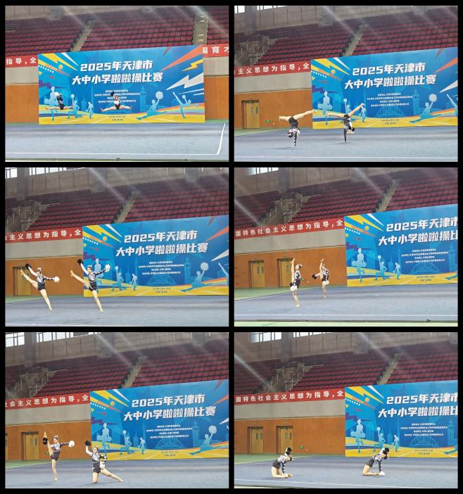 本次比赛由天津市教育委员会指导,天津市学生体育联合会、天津市啦啦操运动协会联合主办,天津仁爱学院承办,共吸引了223所学校的优秀队伍同台竞技,其中报名大学30个单位,中小学193个单位,6124人次运动员。我院学子管理学院刘思涵、会计学院刘欣艳同学,在体育部张慧敏老师的专业指导下刻苦训练:从双人爵士的节奏把控、动作衔接,到花球表演的难度突破、力量展现,每一个细节都经过反复打磨,每一次排练都凝聚着汗水与坚持。比赛现场在动感旋律中展现出极强的凝聚力与艺术感染力,精彩表现引得现场掌声阵阵。