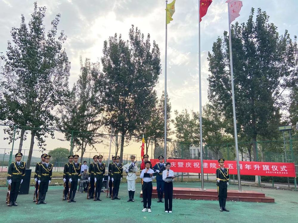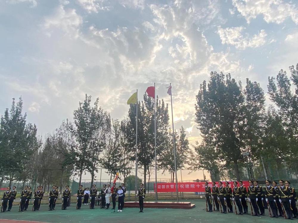 9月30日7点30分,学院举办的迎国庆暨庆祝建院十五周年升旗仪式在操场举行。国旗护卫队、学生教导队全体队员及各二级学院学生代表共计400余人现场观礼。