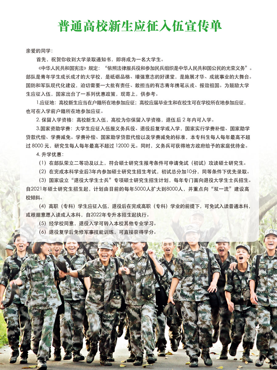 普通高校新生应征入伍宣传单
