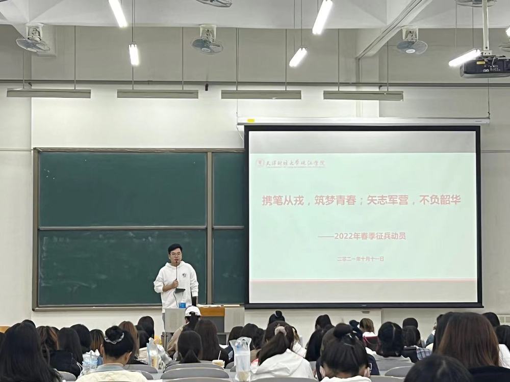 2021年10月11日,武装部开展征兵宣传进课堂活动,为2021级学生们讲解最新的征兵政策,介绍军营生活,回答学生们关于征兵的疑问,号召有志青年积极参军入伍,报效祖国。