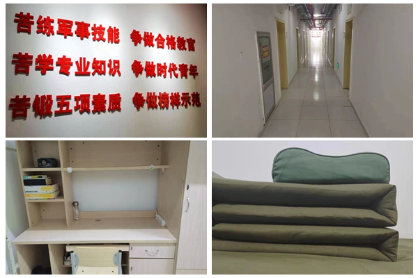20211117日,院长任碧云教授和副院长李晓鹏在学院武装部人员的陪同下深入学生教导队宿舍和训练场视察学生教导队住宿及日常训练情况。