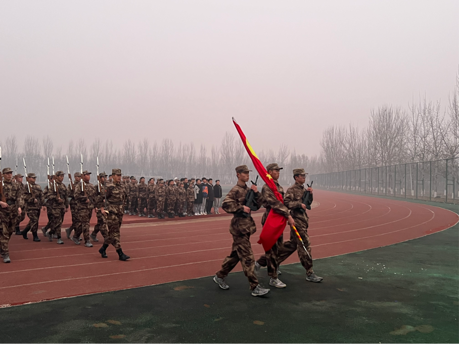 20211129700,学院武装部在操场举行2022年春季征兵宣传周启动仪式主题升旗仪式,武装部“三队一中心”(国旗护卫队、学生教导队、应征兵员预备队、大学生军人服务中心)共160余人参加。