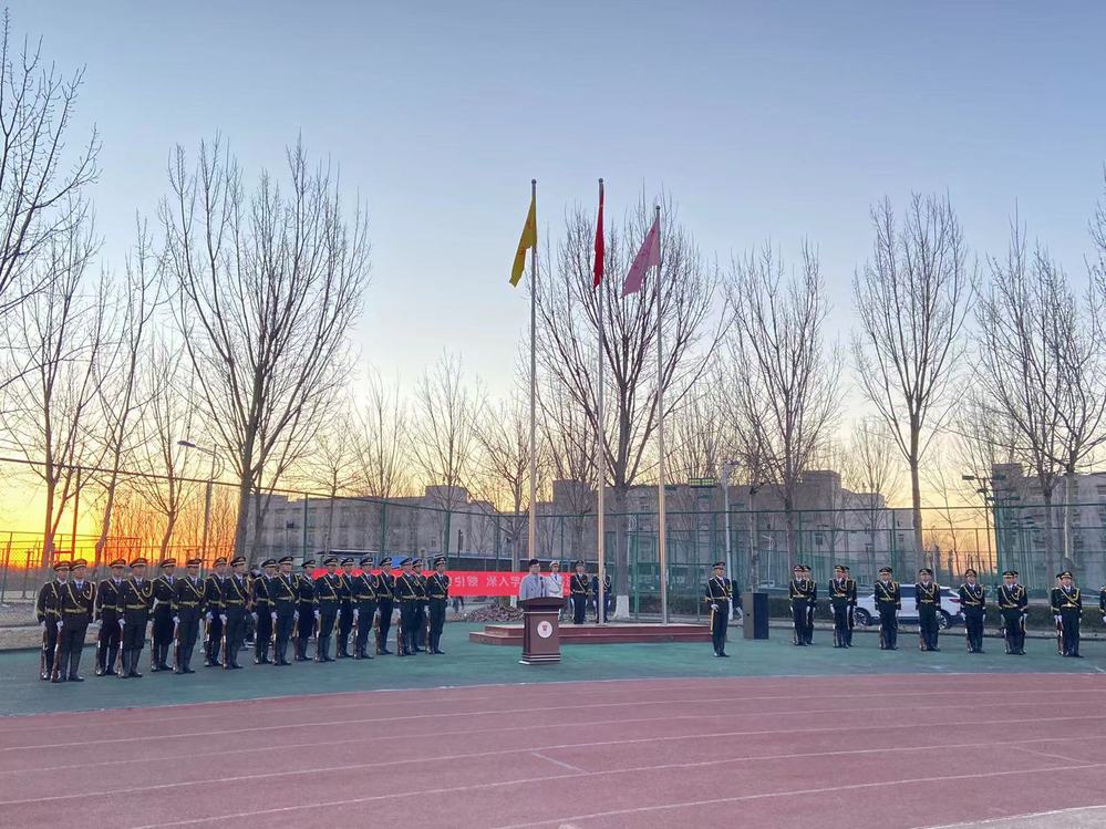 12月3日7:00,学院武装部、团委联合开展的“以习近平法治思想为引领,深入学习宣传宪法”宪法晨读主题升旗仪式在田径场国旗下举行。武装部国旗护卫队、学生教导队、应征兵员预备队、大学生军人服务中心及团委院学生会、青年志愿者协会、大学生艺术团共计200余学生参加。活动由武装部军事干部阳涛主持。
