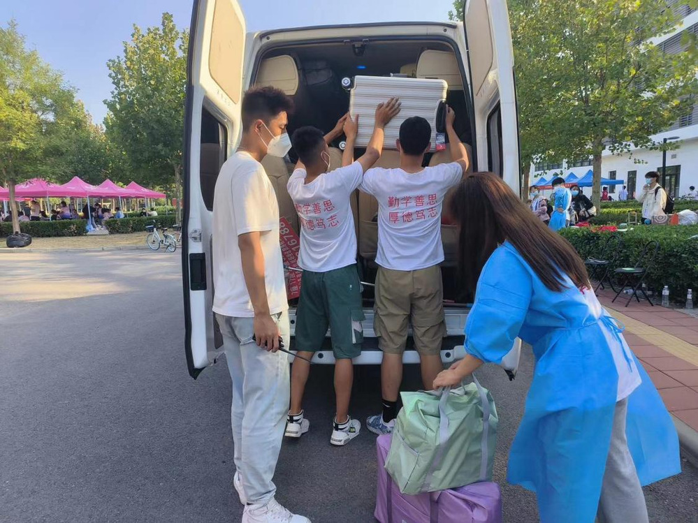 9月16日2022级新生报到期间,学生教导队30名队员负责校内摆渡车调度,他们从早晨5点半集合到晚上7点,调度26辆摆渡车累计发车500余次,高效、有序的将新生从校门接驳至报到现场、从报到现场接驳至宿舍区域,他们主动为新生搬运行李、答疑解惑、熟悉学院。16名教导队队员负责4000余名新生军训服的发放和调换工作,队员们吃苦耐劳,分工明确,反应迅速,现场秩序井然。