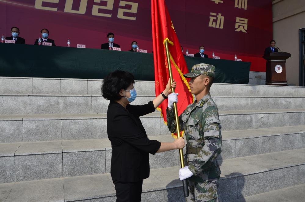 9月22日上午学院举行了隆重的军训动员大会,学院领导班子、各二级学院院长、部分系部负责人、全体参训人员参加了会议。会上,院长任碧云教授宣读了《关于成立2022级学生军训组织的通知》,军训领导小组副组长、副院长李晓鹏作军训动员报告,院长任碧云教授为学生教导队承训教官授队旗,学生教导队面向队旗宣誓,参训学生代表作了慷慨激昂的发言。