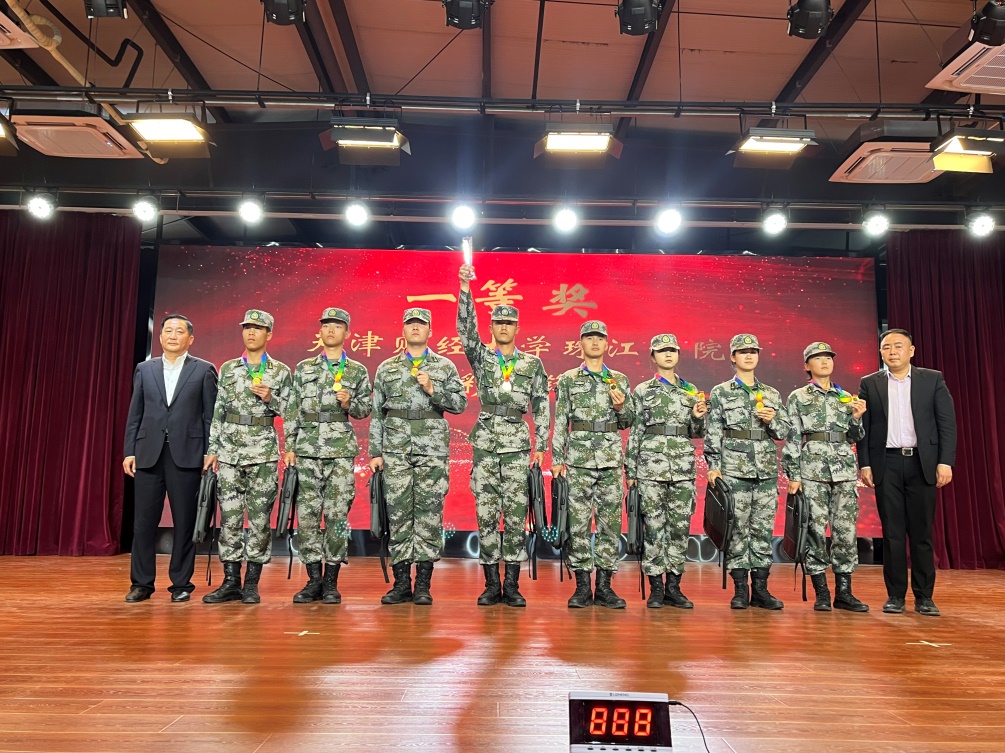 闭幕式上,周少华宣布比赛的结果。李晓鹏、郭鑫为获得一等奖的BEAT365英国官网迷彩先锋队颁奖,石宏卫为获得二等奖的北京科技大学天津学院作风优良队、天津传媒学院听党指挥队两支队伍颁奖,周少华、何林武和吴亚娟分别为获得三等奖的BEAT365英国官网学生教导队、北京科技大学天津学院建设国防队、天津传媒学院不令而行队三支队伍颁奖。郭鑫致闭幕词,他向取得优异成绩的运动员致以热烈的祝贺,对为比赛顺利进行付出辛勤的全体工作人员、裁判员表示衷心的感谢,并向全体人员发出号召:要以青春之名,书写爱国情怀,以青春年华,奉献国防事业!