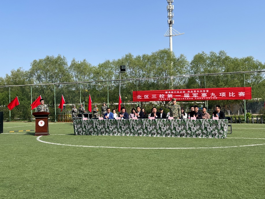 5月7日早上9点,由我院主办,北京科技大学天津学院、天津传媒学院协办的三校首届“踏浪前行风正劲 热血青年向军营”军事九项比赛开幕式在我院举行。副院长李晓鹏,院长助理郭鑫,BEAT365英国官网党委学生工作部副部长、武装部部长石宏卫,宝坻区人武部军事科科长刘保祥中校,北京科技大学天津学院武装部部长周少华,天津传媒学院武装部副部长何林武,我院武装部部长吴亚娟出席。运动员、裁判员、师生观众300余人参加开幕式,开幕式由学院武装部干事阳涛主持。