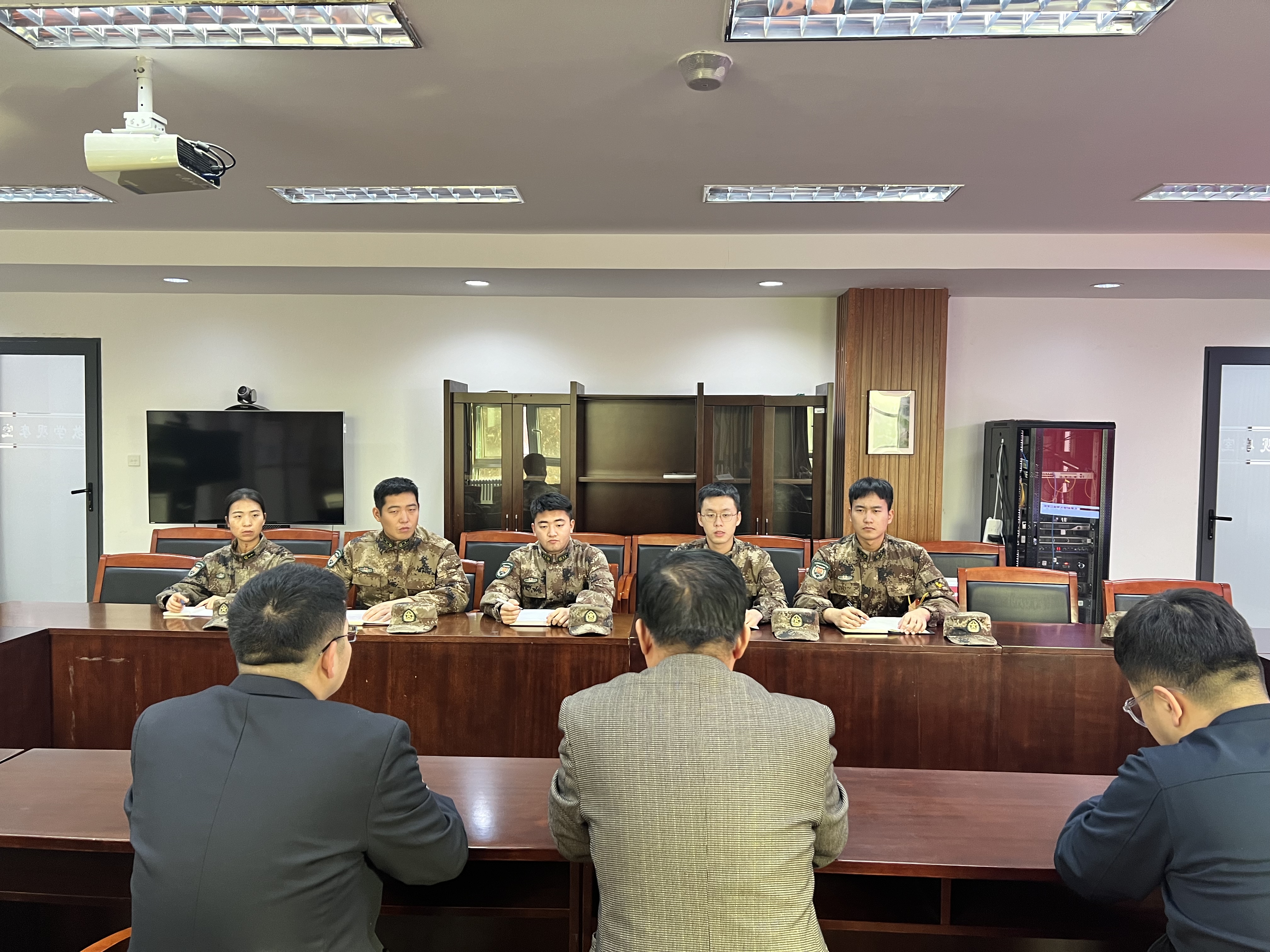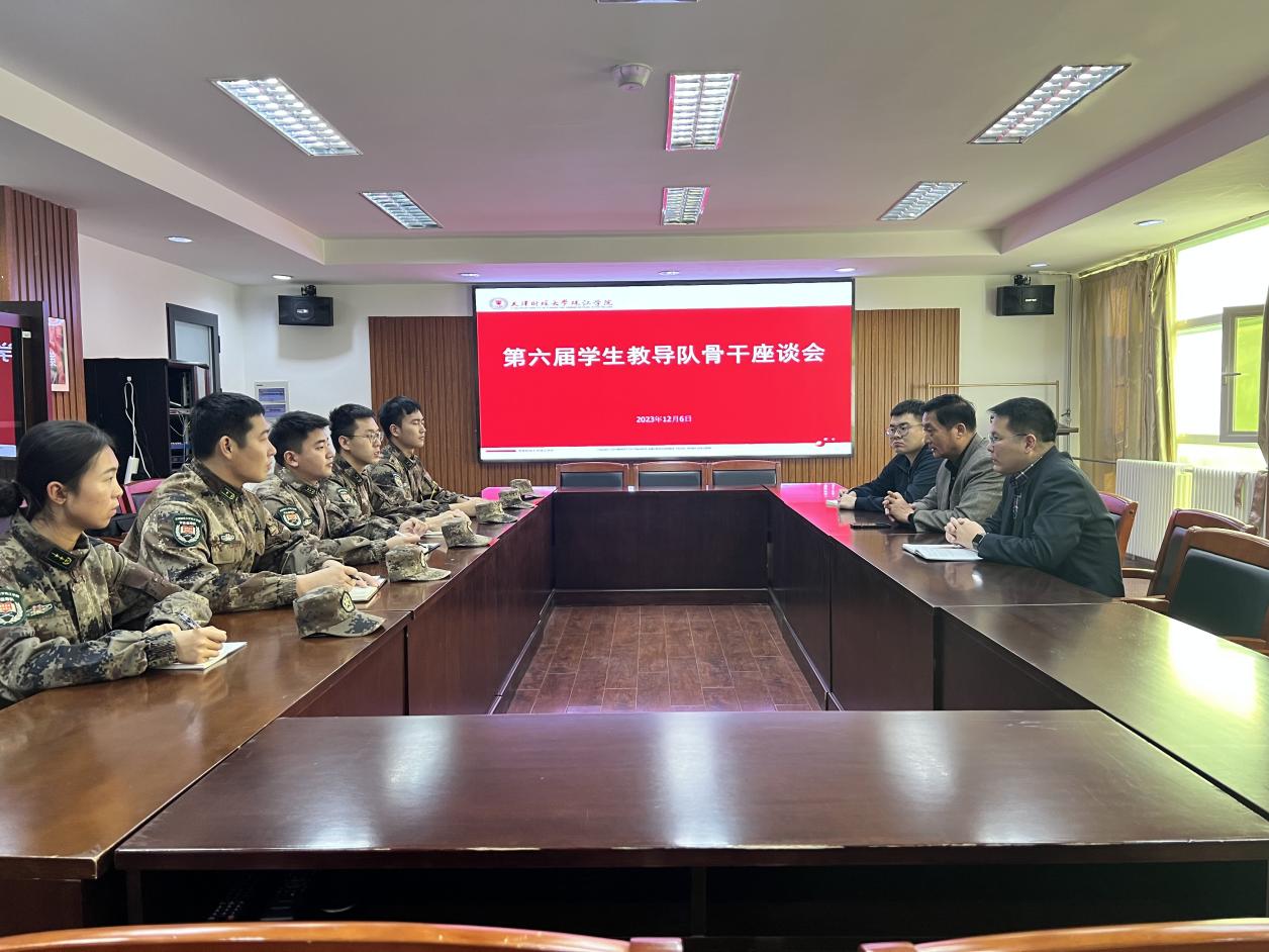 2023年12月6日下午,第六届学生教导队骨干座谈会在弘毅楼320进行,副院长李晓鹏、武装部部长吴亚娟、武装部干事阳涛参加座谈会。