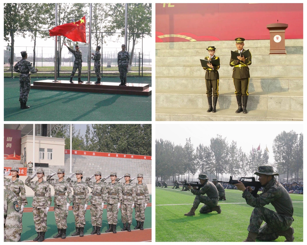 学生军训团结合《普通高等学校军事课教学大纲》的科目内容,融入系列爱国爱校主题教育活动,利用新生大学第一课营造同学们热爱国防、铭记历史、永担新时代大任的校园文化氛围,为大学四年学习生活树立良好的行为规范。