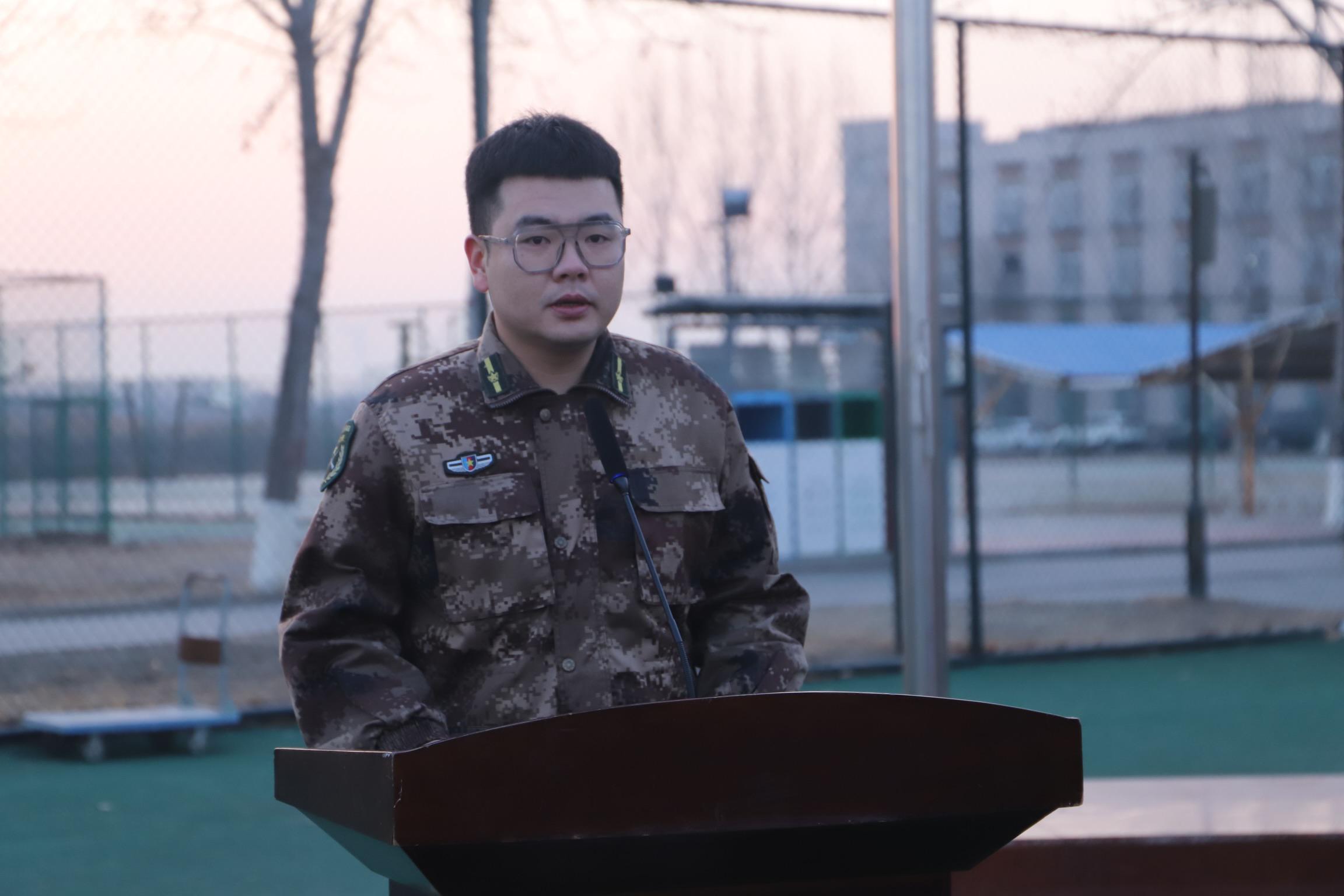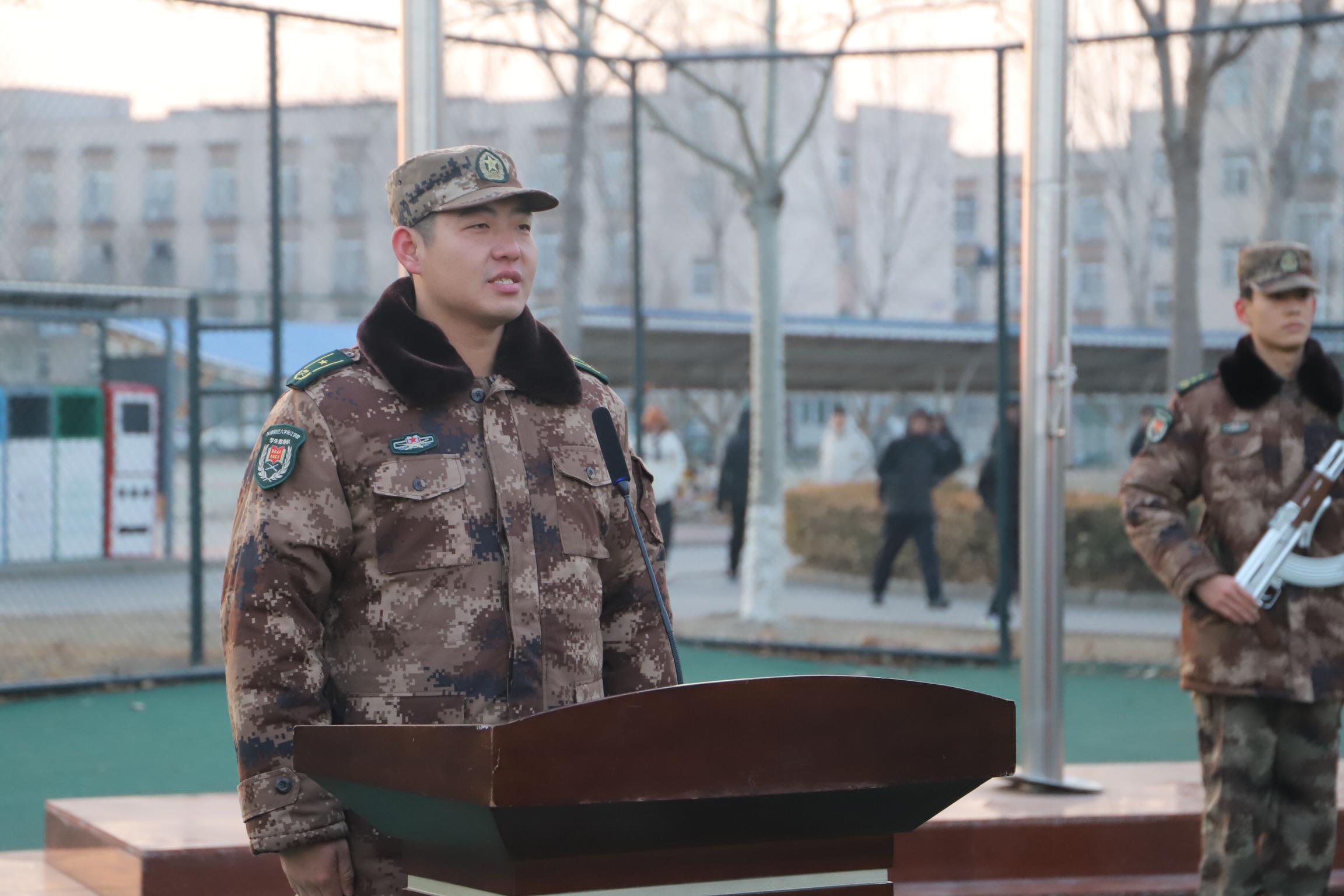 升旗仪式结束之后,学生教导队的教导员贾轻松对本学期教导队的训练计划、训练目标做出动员,并表达了对本学期训练的期待与信心。