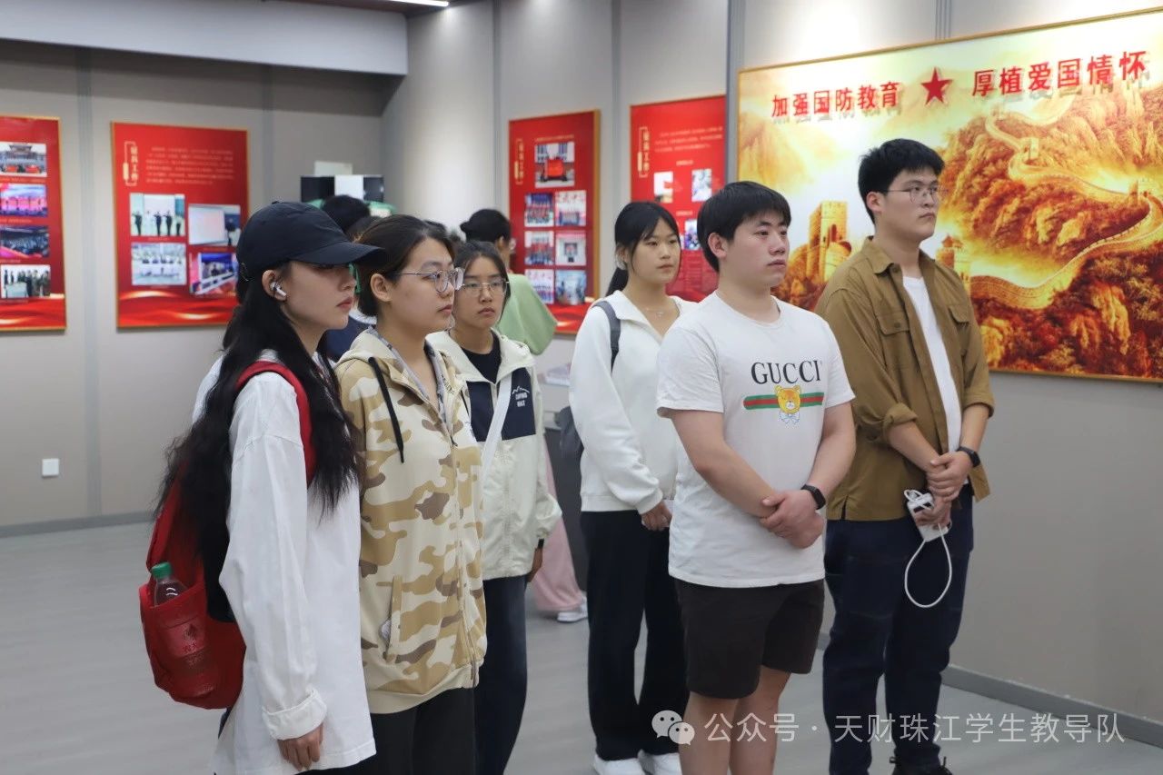 最后,主持人宣布学院第二届全民国防教育宣传月活动正式启动,详细介绍了相关活动安排和计划。并组织23、22、21级学生代表参观国防教育展室,大学生军人服务中心的工作人员进行了现场讲解。学生们在展室中认真聆听,这不仅激励了他们的爱国情怀,更让他们深刻理解了国耻不能忘、和平需珍惜的道理,同时也从中汲取了奋斗的力量。