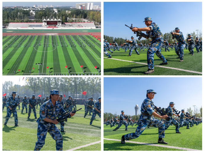 9月29日上午,学院在体育场举行了主题为“深化大中小学国防教育一体化建设 锻造跨学段爱国强军育才坚实根基”——2025级学生军训成果展示暨总结表彰大会。天津市委宣传部宣教处(全民国防教育处)处长郝丹丹,天津市教委体美劳处四级调研员齐双一,中国人民武装警察部队天津市总队机动支队少校大队长武海龙,宝坻区周良街初级中学100余名师生,2025级部分学生家长代表受邀参加;学院领导任碧云、梁海龙、李晓鹏、杜展鹏、陈明明、白晓、时憧宇、郭鑫、赵梦蝶出席,军训团各部门负责人、各教学单位负责人、各二级学院学生工作办公室主任、辅导员老师们和4000余名参训新生参加。学院副院长李晓鹏主持大会。