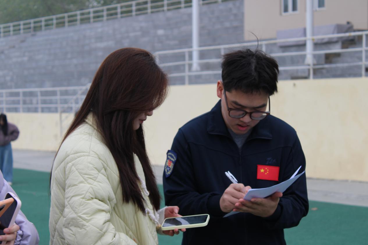 大学生军人服务中心同学除现场指导外,还承担成绩记录与统计工作。他们手持记录板,在每位选手完成射击后及时登记成绩遇选手表现优异,便点头给予鼓励。