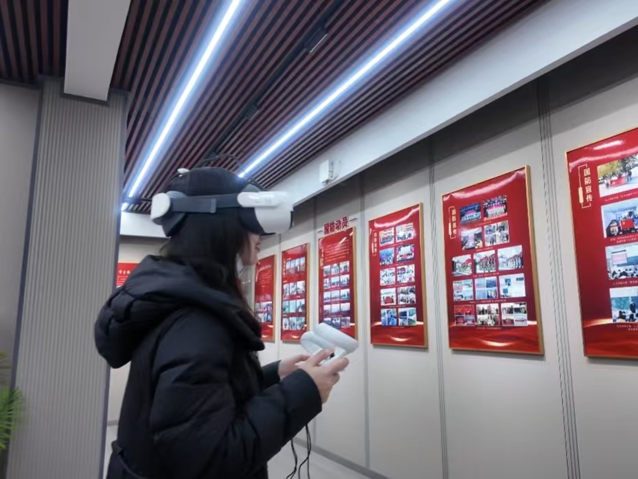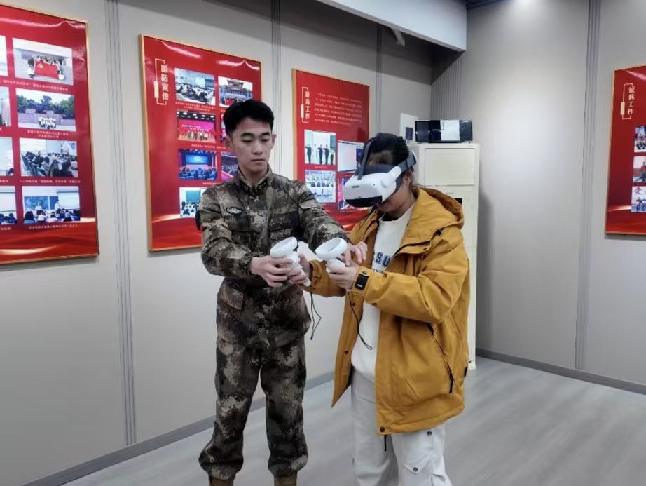 VR眼镜体验区设置了“飞夺泸定桥”“航行地球”、心肺复苏等丰富多样的项目。借助科技的力量,同学们仿佛穿越时空,身临其境地感受革命先辈们在艰苦环境中英勇奋战的担当精神,在技能模拟中学习应急救护知识。这种新颖的体验方式,让国防教育既生动有趣又实用有效。