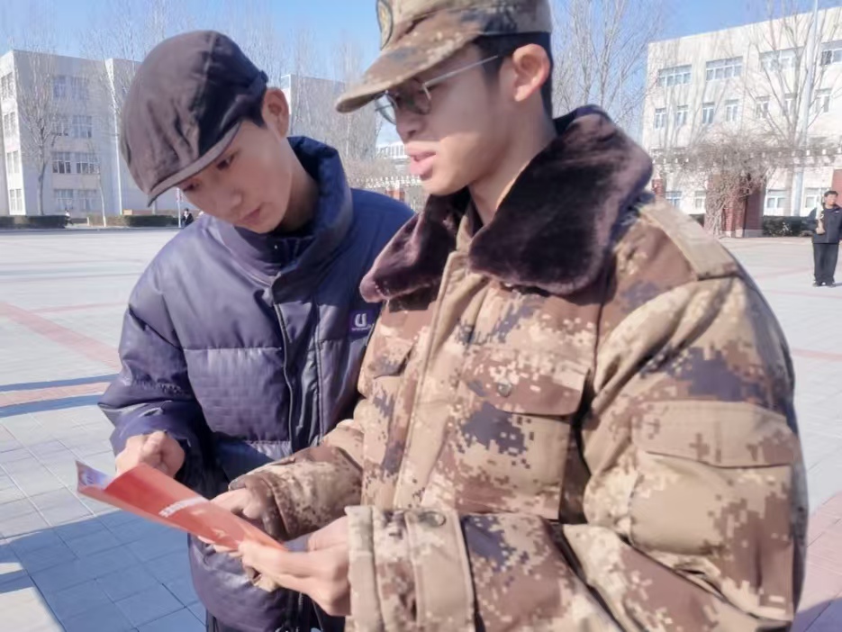 体验之余,兵员预储连连长王宝泉与学生教导队队员们耐心细致地解答同学们关于入伍条件、优待政策、报名流程、退役安置等方面的疑问。他们用专业的知识和热情的服务,为意向学子提供全方位的指导。现场的宣传展板与政策手册,图文并茂地展示着征兵政策红利,营造出“一人参军、全家光荣”的浓厚氛围,让同学们感受到参军报国的无上光荣。