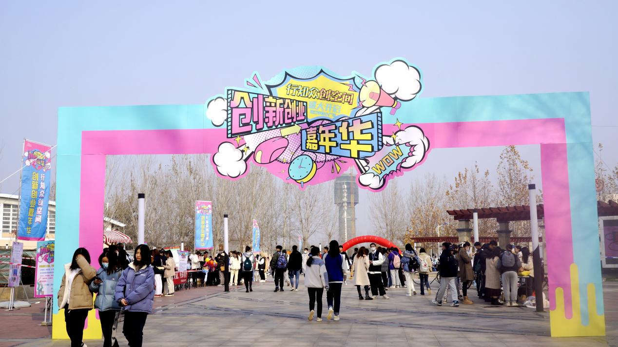 从12点开始,活动以“行动诠释理想,创业造就未来”为主题,设置“大创项目”成果展示、五大学院双创成果展、素质类社团表演等6大展区,更设置多种互动小游戏吸引学生深入了解学院创新创业教育发展。