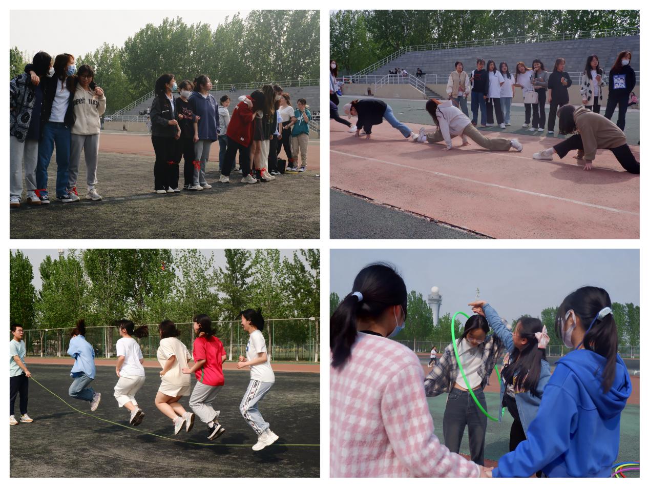 活动分为四项:三人四足、一字马接力游戏、跳绳游戏和呼啦圈接力比赛,每一个比赛项目在锻炼大家动手动脑能力的同时,也培养了大家的规则意识和团队精神。整个活动气氛热烈,参赛的每一位同学、每一个团队都牵动着大家的心弦。同呼吸,共命运,彼此加油、欢呼、喝彩,现场欢声笑语此起彼伏,体现了大家极大的热情。