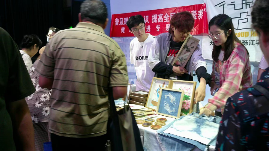 本次活动是以“海河东岸·沽水流霞”为主题,主要面向天津市民展示天津海河传媒中心各个精品栏目的优质内容,我院大创计划团队曾作为嘉宾参与天津经济广播专题节目,本次更是派出《境现掐丝》-掐丝珐琅工艺的潮流文创、《宝易嘉》-古法蓝染潮品、《木造乾坤》-非遗软木画、《无限丹青》-年轻人喜爱的国风手绘摆件、《乐道拾遗》-非遗蜡染文创新品等多个文创团队参展。各团队精美的产品博得观众的青睐,更是有产品被抢购一空。