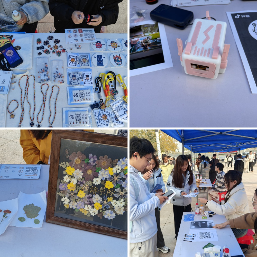 11月5日,学院2025年大学生创新创业成果展洽交流会在文华广场成功举办。本次活动由学生工作部创业指导中心(行知众创空间)承办,共15个大学生创新训练计划项目携成果参展,2000余名师生参加了活动。