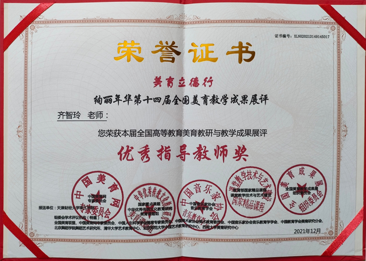 绚丽年华第十四届全国美育教学成果展优秀指导教师奖