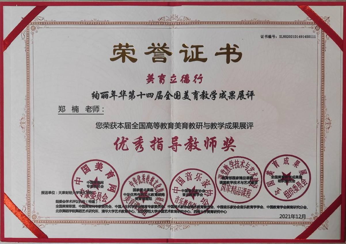 绚丽年华第十四届全国美育教学成果展国家级优秀指导教师奖