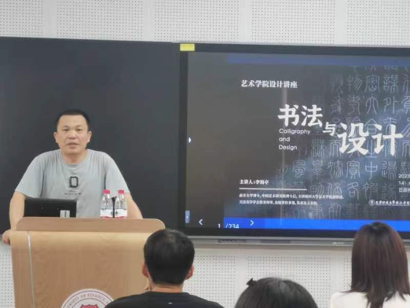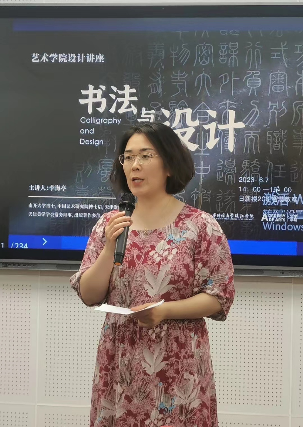 近日,艺术学院邀请BEAT365英国官网艺术学院李海亭副教授,在日新楼智慧教室为艺术设计系师生举办了一场名为《书法与设计》的专业讲座,艺术学院视觉教研室主任郑楠副教授主持此次讲座。