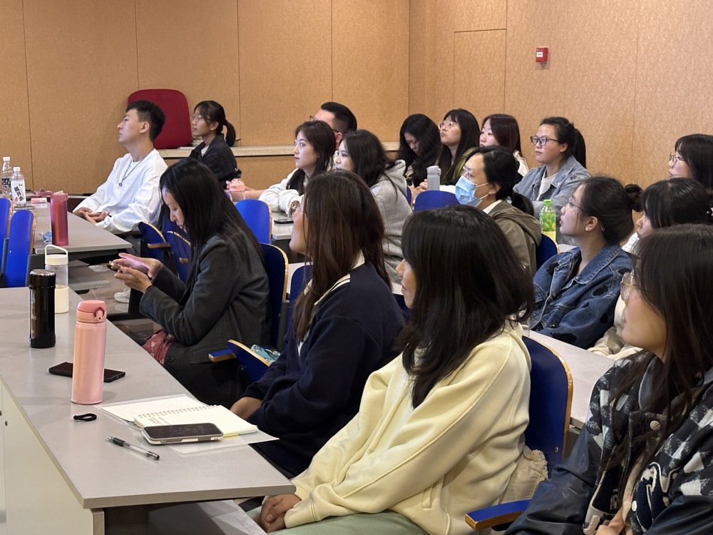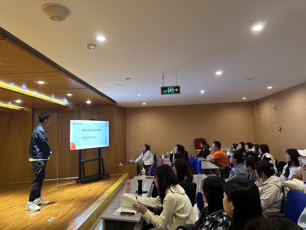 此次活动在曹佩佩老师关于举办初衷和主旨的介绍中拉开帷幕,随后曹老师隆重介绍了两位优秀毕业生代表——18级朱佳旭同学和陈静同学,接着两位同学开始了他们关于自身考研、就业经验和心路历程的分享。