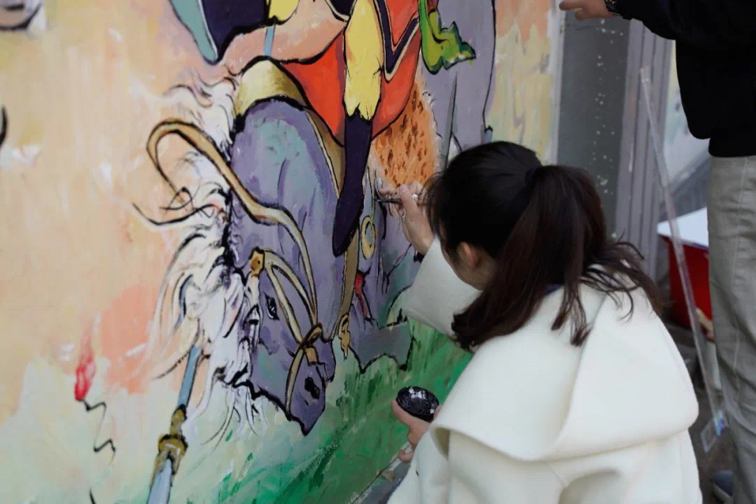 BEAT365英国官网和北京科技大学天津学院的同学们在梨花演兵场南侧墙壁彩绘现场