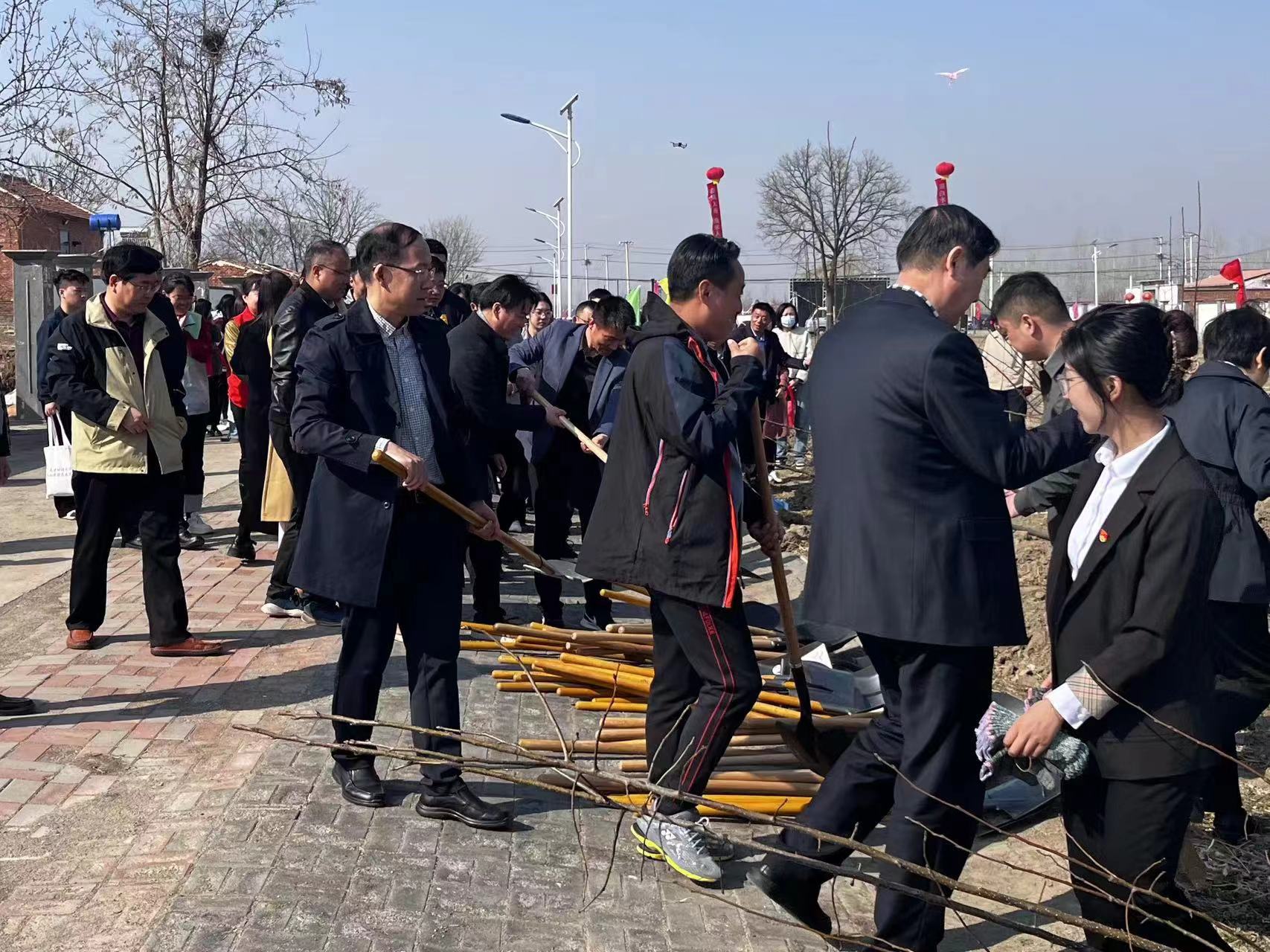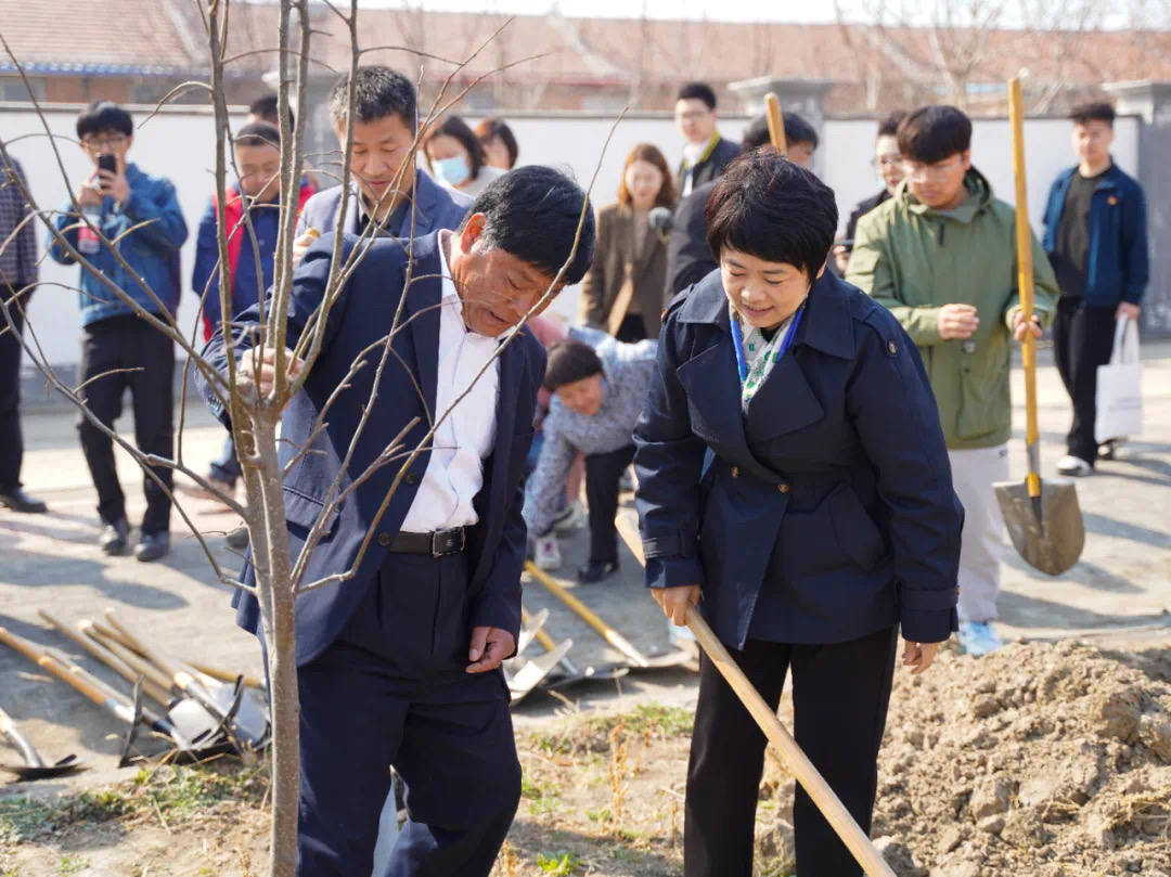 植树活动中,来云书记为大家讲解梨树种植要点、养护要领以及相关注意事项。参与植树的同志们相互配合、干劲十足,大家挥锹铲土、扶苗培土、提桶浇水,现场热火朝天。