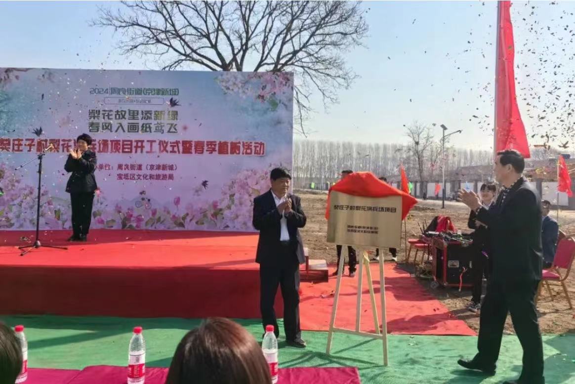 周良街道(京津新城)党工委书记吴凤双和樊庄子村党支部书记来云共同为梨花演兵场项目揭牌