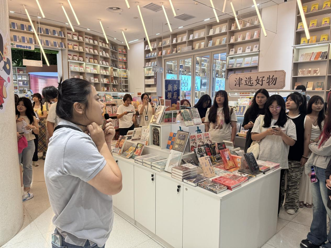 活动开始,国图·津湾文创空间的馆长王钰女士热情接待了师生一行。在王馆长的引领下,同学们首先对馆内的空间布局进行了细致入微的观察:从琳琅满目的文创产品到独具匠心的展览设计,每一处细节都透露出浓厚的文化气息和创新理念。