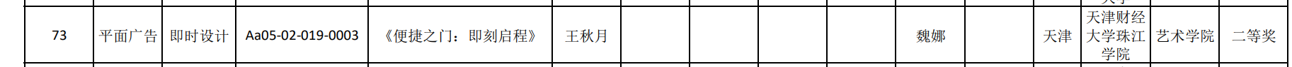 近日,第16届全国大学生广告艺术大赛天津赛区成绩公布,艺术学院艺术设计系韩姣老师所指导的学生孙超艺同学凭借作品《童年》在短视频类中获得二等奖,魏娜老师所指导的学生王秋月同学凭借作品《便捷之门:即刻启程》在平面广告类中获得二等奖。另外还有芮正佳、韩姣、魏娜老师指导的多件作品入围。