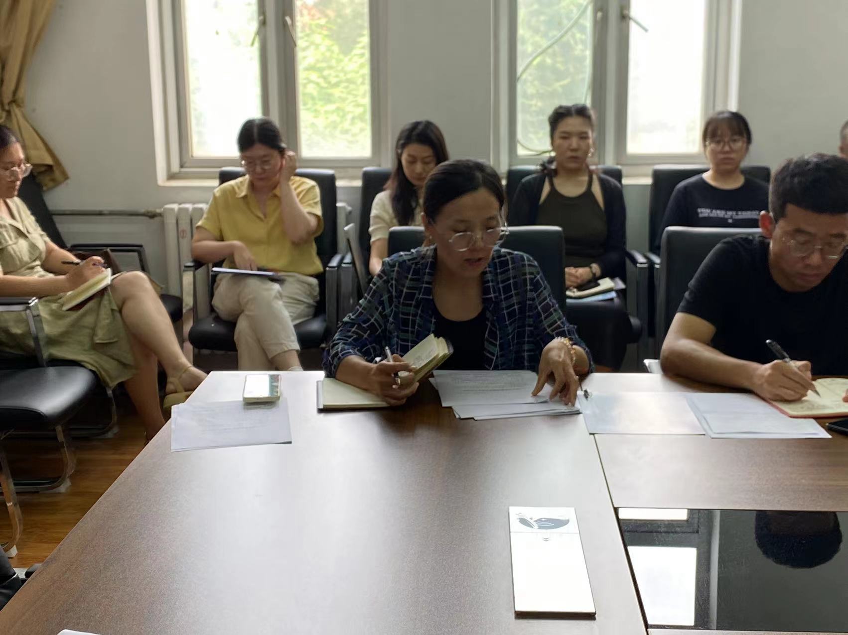接着,艺术设计系主任李迎丹和音乐系副主任王妍珏分别介绍两个系部上半年的师德师风建设、教学与科研工作、竞赛获奖情况、实习基地建设、校园环境提升与校园文化建设、美育与实践教学工作等方面的工作情况,并表扬了所在系部教师们积极主动的工作态度和上半年的工作成绩。