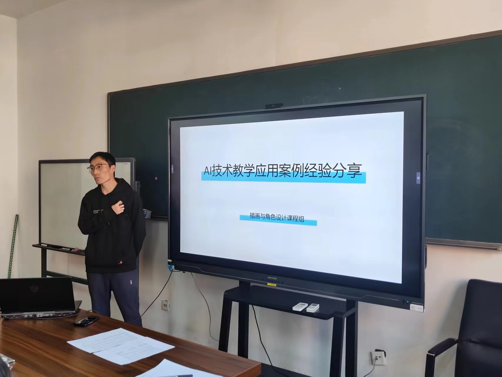 艺术学院教师王勐结合环境设计专业的行业现状,阐述了AI在设计领域的普及程度。他通过数据分析指出,高校教育必须紧跟行业需求,探索全流程课程的AI教学实践。