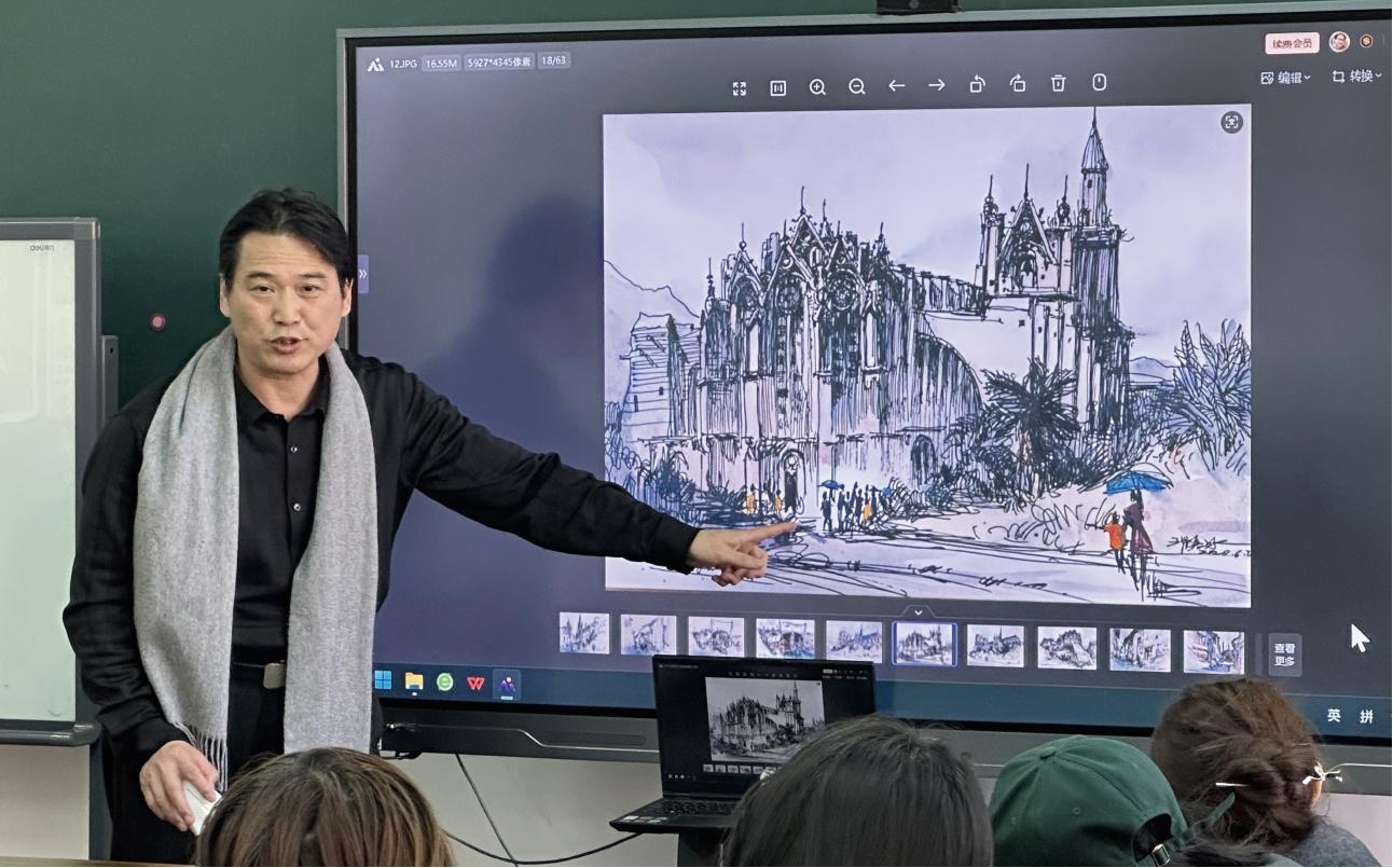 自2月27日以来,此次比赛吸引学院学生踊跃参与,共收到投稿作品76件。经过初步筛选,共计36幅优秀作品脱颖而出。为进一步提升学生作品质量,滑寒冰院长面向学生传授钢笔画理论知识,并对每一幅作品进行了细致点评。