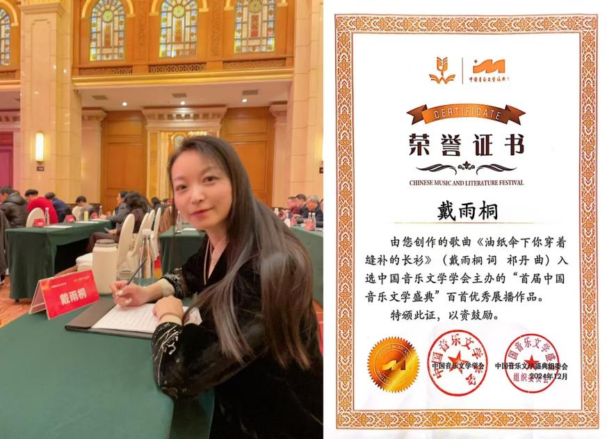 近期,由中国音乐文学学会主办的首届中国音乐文学盛典在重庆召开,其中我校音乐系副教授戴雨桐老师作品《油纸伞下你穿着缝补的长衫》成功入选“百首优秀展播作品”。作品运用细腻的情感表达和独特的意象塑造了共产党员光辉的形象,引发了听众喜爱,在2000余首参赛作品中脱颖而出,展现了戴雨桐老师在音乐文学创作领域的专业能力和创新能力。这次活动是建国以来唯一以“音乐文学”为主题的首届国家级大型活动,内容包括作品征集、展播、展演、表彰、研讨、优秀作品巡演、盛典礼等活动内容。