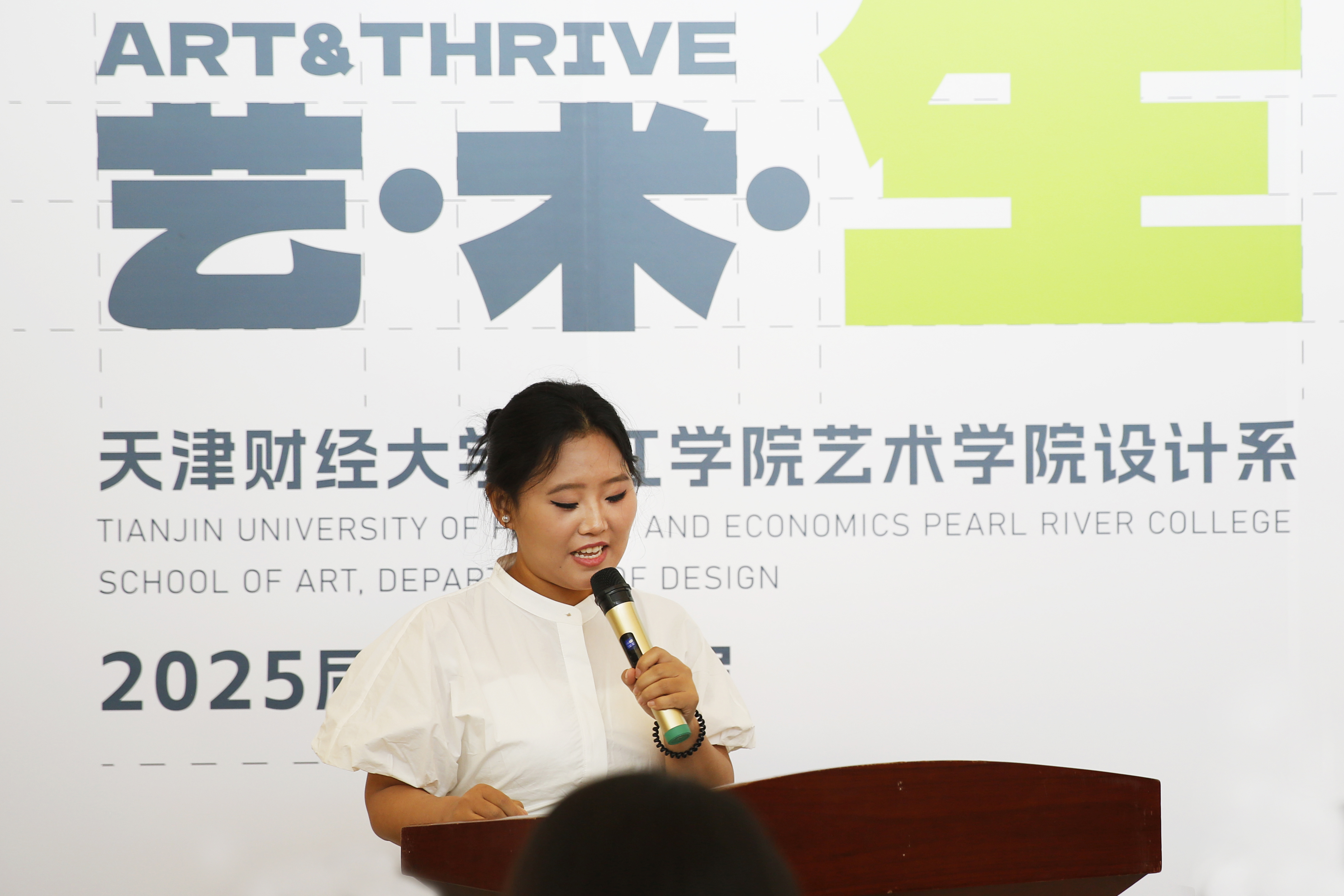 随后,艺术学院院长滑寒冰发表发言。他感谢学院为师生搭建起人生学习的平台,感谢宝坻这片沃土为师生学以致用提供广袤实践土壤,感谢师生团队以卓越协作力为学院发展谱写出美丽华章。此次毕业设计作品展体现了这四年时光中老师们的辛苦培育,与同学们的刻苦学习。这不仅是学子逐梦路上的轨迹印记,更承载着高校以设计育人的核心理念与实践成果。