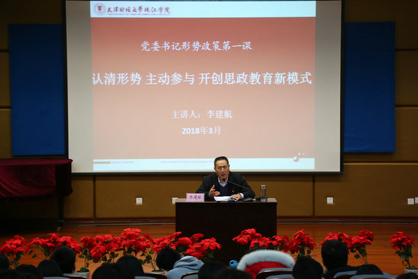 2018年3月21日下午,我院党委书记李建航为学生讲授形势政策教育第一课。本次第一课以“认清形势、主动参与、开创思政教育新模式”为主题,全院党员、入党积极分子等学生代表共计200余人聆听了报告。