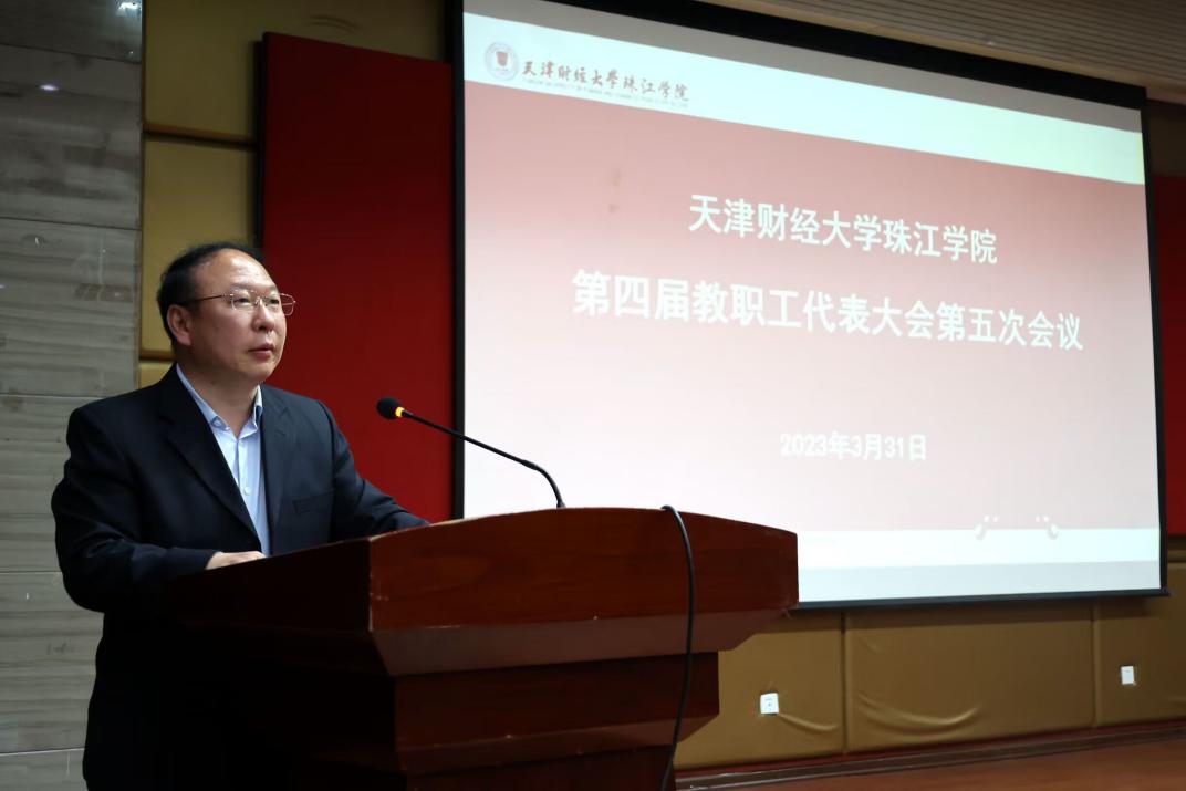 3月31日,第四届教职工代表大会第五次会议在弘毅楼报告厅召开。会议审议了《BEAT365英国官网转设论证报告》(审议稿)(以下简称《转设论证报告》)。教职工代表共83人参加了会议,会议由工会副主席支玉成主持。